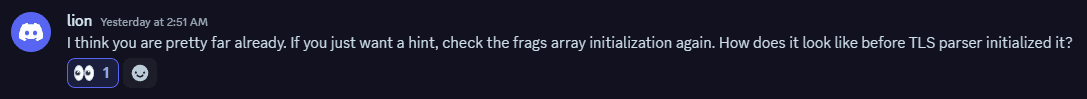 After spending a couple of hours, I decided to ask about this vulnerability on the kernelCTF discord server. A couple hours after that, lion responded with a really nice hint: